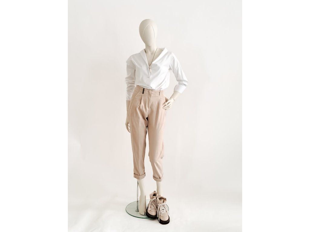 Zkrácená délka nohavic zakončená jemnou manžetou působí velmi žensky a dodává outfitu lehkost. Klasické zapínání na zip a poutka na pásek dělají z modelu Karina univerzální kousek, který snadno zkombinujete pro formálnější i volnočasové příležitosti. Je to ideální volba pro dny, kdy chcete vypadat upraveně a přitom si dopřát maximální pohodlí.