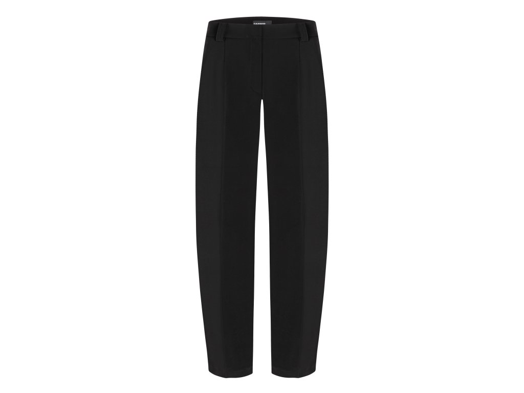 Černé kalhoty Cambio Anais s jemnými pruhy po stranách a soudkovým stylem přinášejí svěží pohled na klasickou eleganci. Výrazné, ale zároveň střídmé provedení dodává outfitu osobitost a nadčasový šmrnc. Skvěle fungují v kombinaci s jednoduchým topem i strukturovaným sakem.