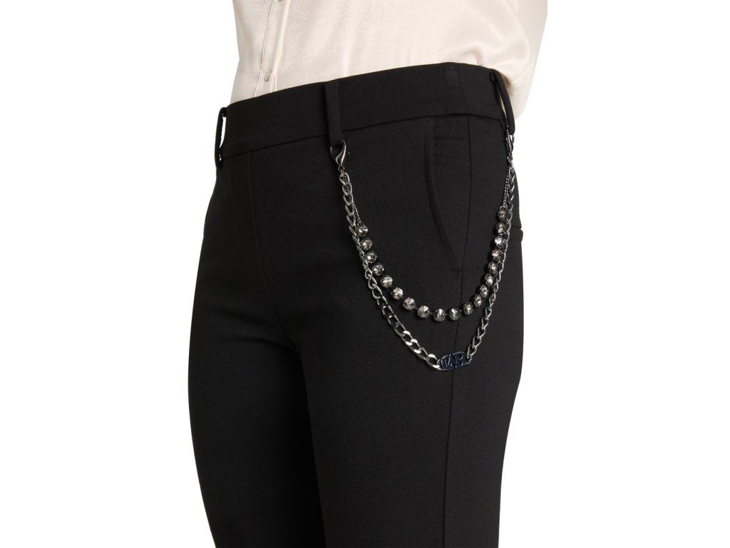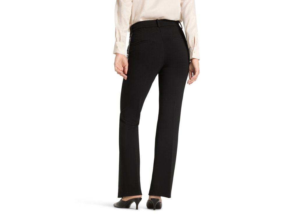 Černé Elegantní kalhoty Cambio Francoise v klasickém střihu s lehce rozšířenými nohavicemi jsou ztělesněním nadčasového stylu. Díky zapínání na zip a decentnímu ozdobnému řetízku na jedné straně působí sofistikovaně, aniž by ztrácely na pohodlí. Materiál s 68 % viskózy je příjemný na dotek a zaručuje komfort po celý den. Skvělá volba pro elegantní i ležérnější kombinace.