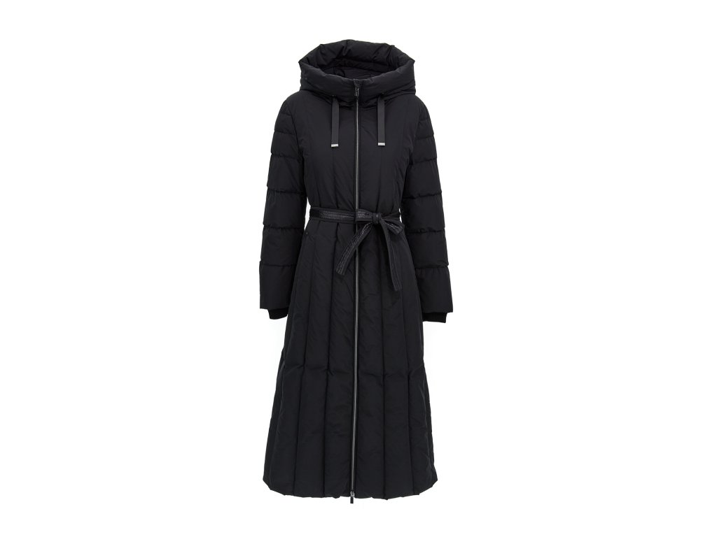 Černý dlouhý prošívaný kabát Diego M s páskem