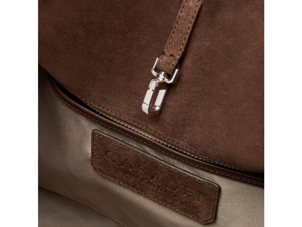 Vyrobená z jemného semišového teletiny v odstínu cocoa, působí sofistikovaně a univerzálně zároveň. Lze ji nosit jak elegantně v ruce, tak pohodlně přes rameno – vždy dokonale doplní váš osobní styl.