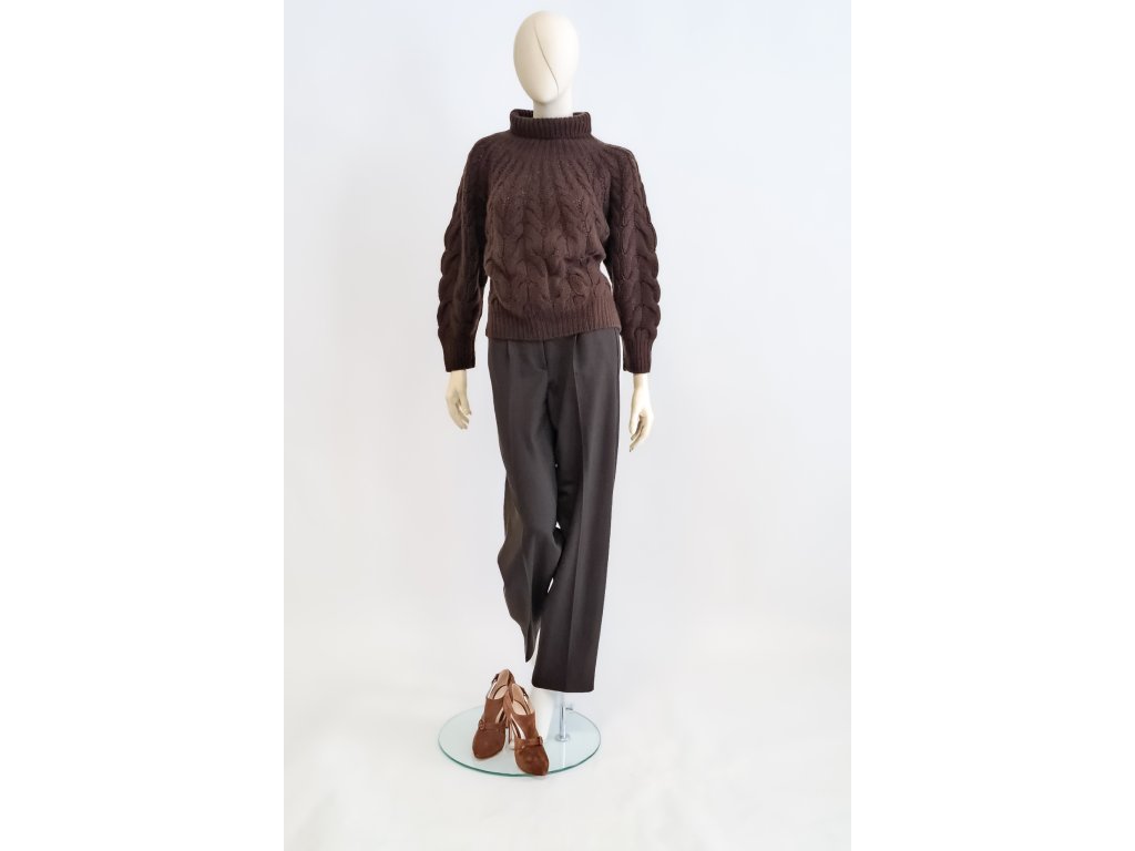 Hnědé delší kalhoty Cambio Elyssa s příměsí vlny a soudkovým stylem přinášejí svěží pohled na klasickou eleganci. Výrazné, ale zároveň střídmé provedení dodává outfitu osobitost a nadčasový šmrnc. Skvěle fungují v kombinaci s jednoduchým topem i svetrem.