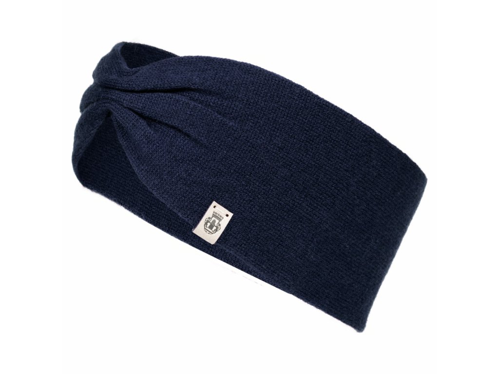 Jemně pletená modrá kašmírová čelenka Roeckl