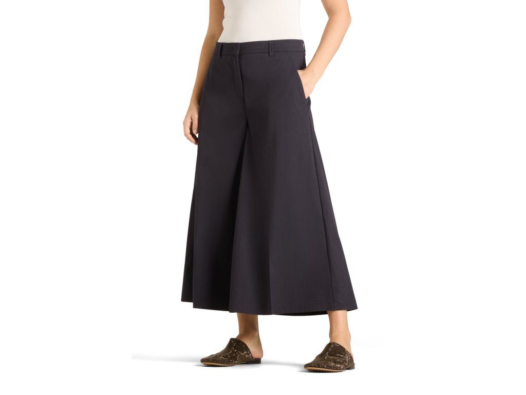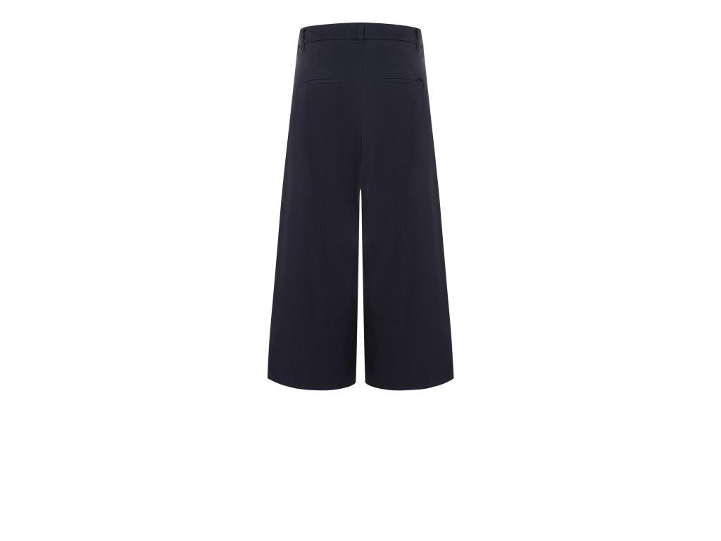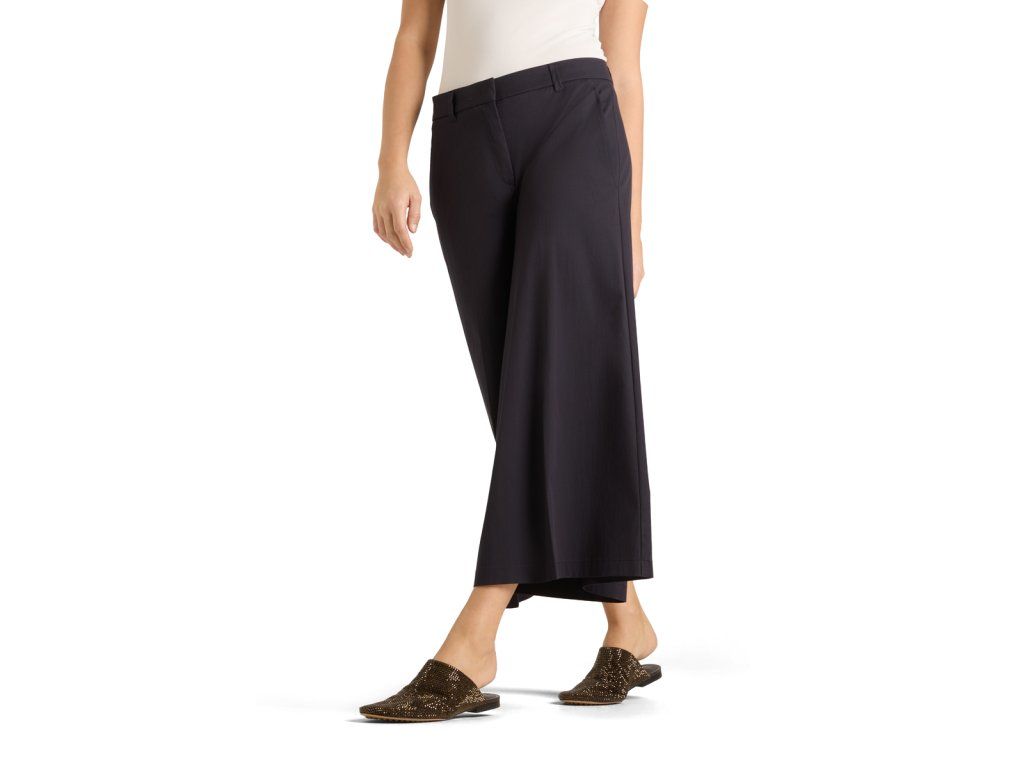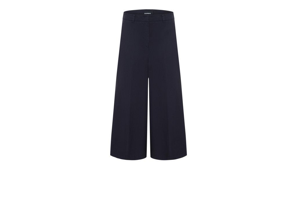 Modré kratší široké kalhoty Cambio Chartotte s krátkým střihem a širšími nohavicemi budou ideálním společníkem do každé situace. Kalhoty mají příměs elastanu a mají vysoce módní styl, a proto se budou dát kombinovat jak s tričkem tak i formálnější košilí nebo topem.