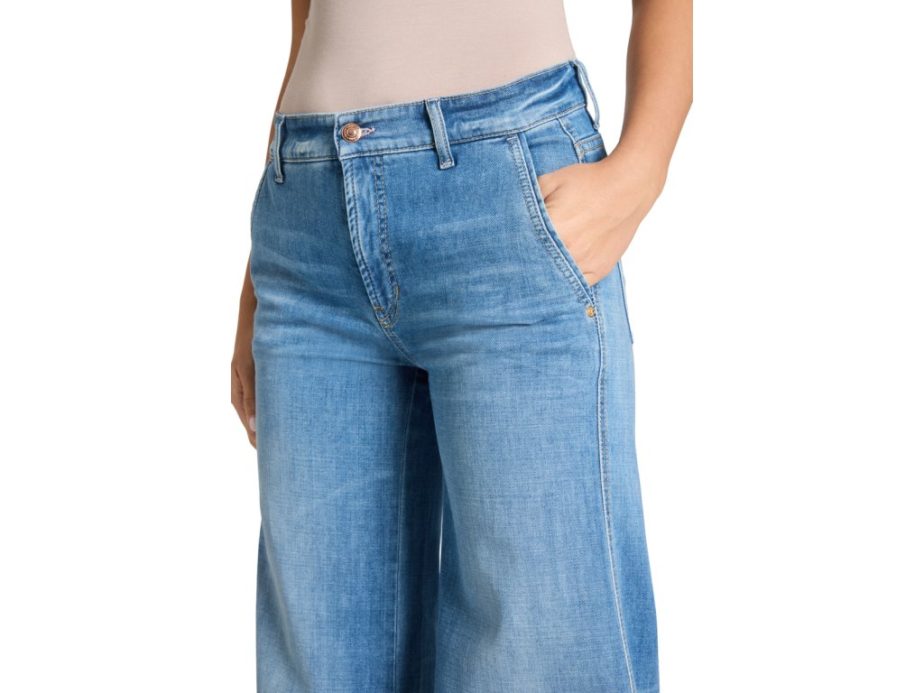 Modré džíny Cambio Alek definuje jejich moderní široký střih a prodloužená délka nohavic. Jsou vyrobeny z vysoce elastického denimu, který zajišťuje pohodlí i při celodenním nošení. Díky minimalistickému provedení bez zbytečných detailů se tento model stává univerzálním základem jarního šatníku.