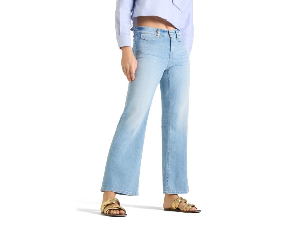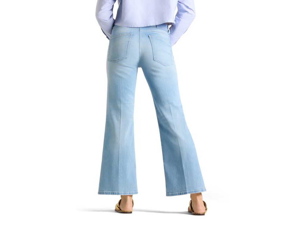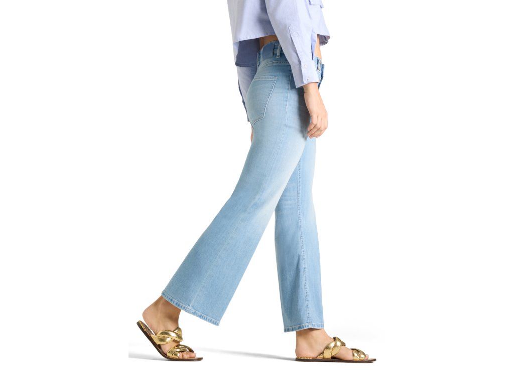 Velmi módní džínové kalhoty jsou jsou z měkkounké letní džínoviny. Nohavice jsou od kolen dolů mírně rozšířené. Přední části nohavic jsou v oblasti stehen mírně vyšisované. Zadní díl kalhot je ozdoben 2 našitými kapsami bez proštepování.