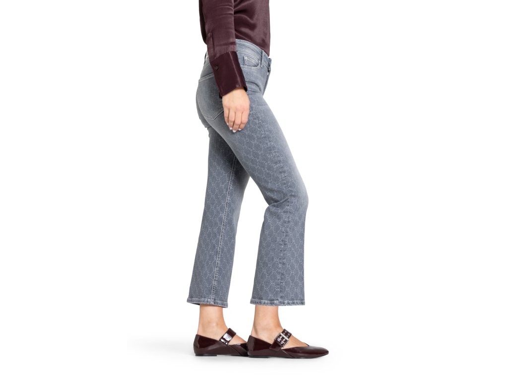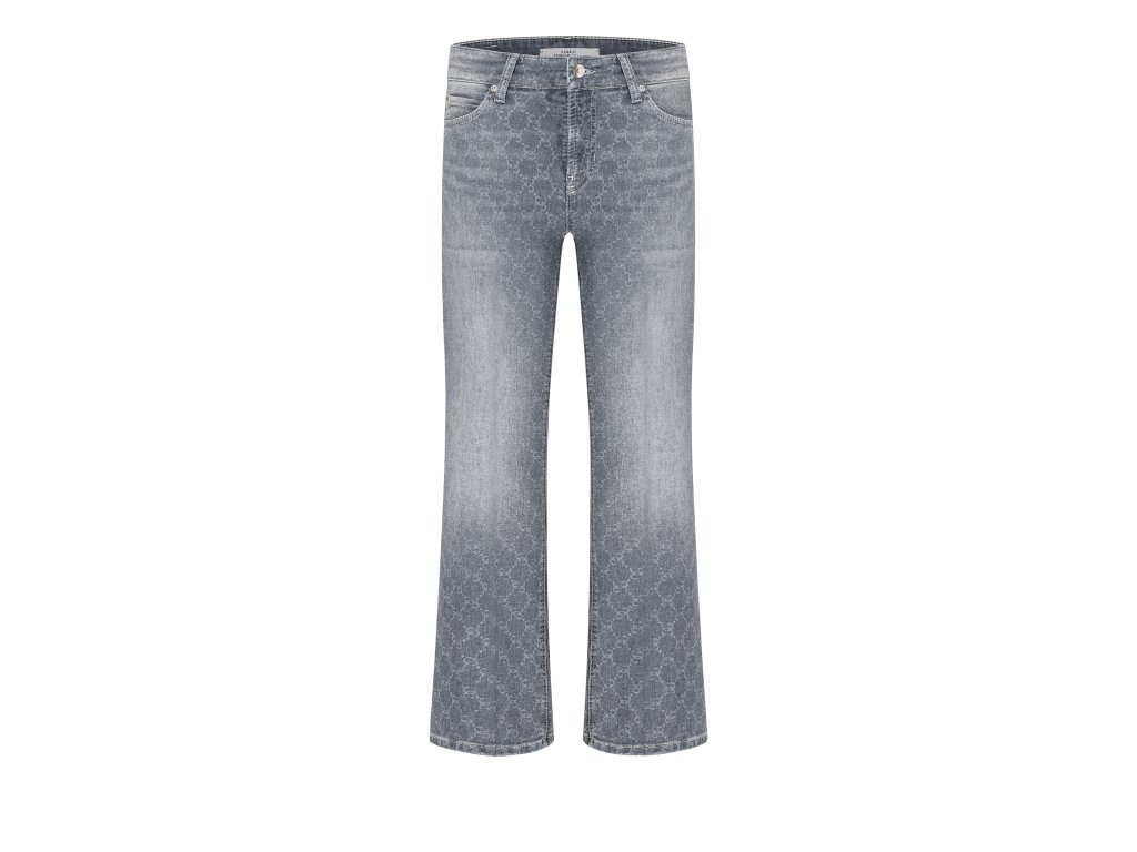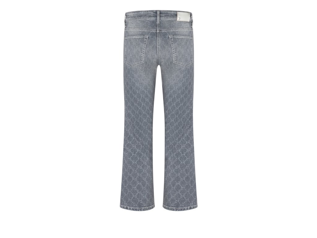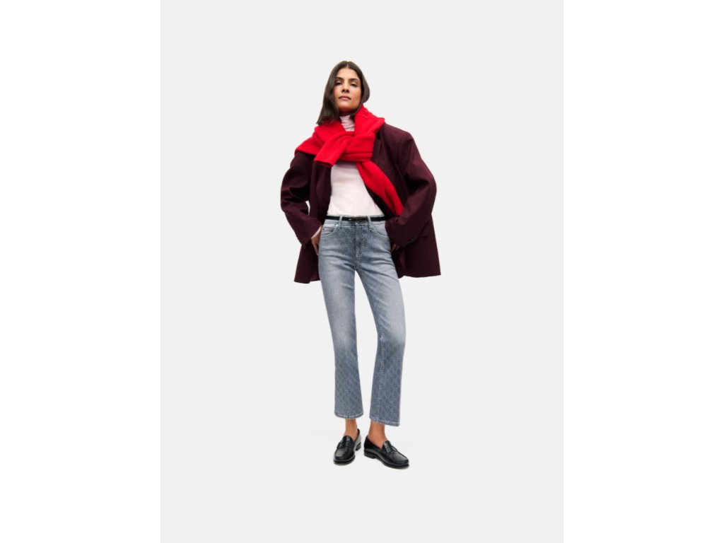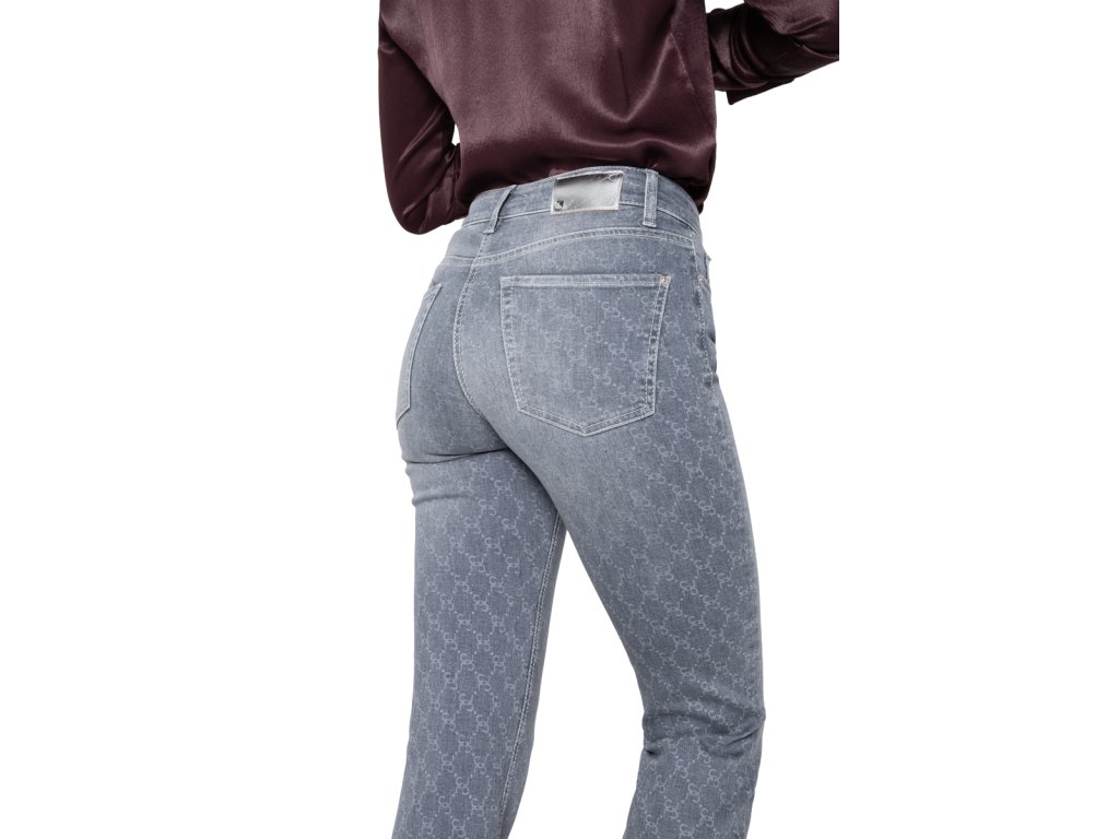 Modrošedé džíny Cambio Paris s krátkým střihem a nohavicemi mírně do zvonu. Tato modrošedá je hitem letošního roku, dá se skvěle kombinovat s neutrálními barvami. Kalhoty mají na sobě moderní potisk.