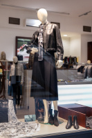 Jako malou ochutnávku jara už nyní připravujeme rovné širší košile, které skvěle fungují navrstvené přes jemný top. Mým favoritem je model od Peserico. Perličky podél límečku nejsou jen krásným detailem, ale mají i svou funkci, límeček díky nim perfektně drží svůj tvar a krásně rámuje obličej. Trendem letošního jara jsou kalhoty Cambio s grafity potiskem.
