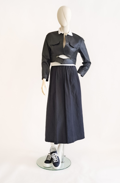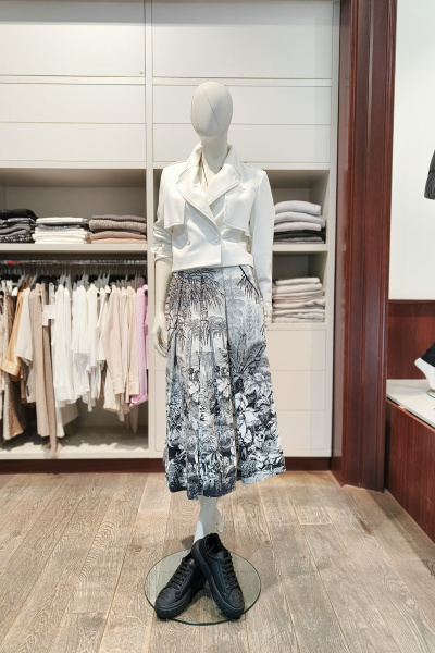 Krátké kožené bundy Peserico v modré a šedobéžové barvě jsou mým jarním favoritem. Skvělá je hlavně jejich variabilita – spodní část můžete jednoduše odepnout a mít tak zkrácenou bundu k sukni nebo širokým kalhotám. Navíc je to střih, který bez problému zapnete i přes hrudník, aniž by bunda ztratila svůj tvar.