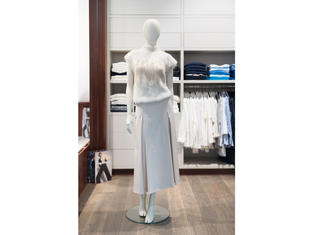 Tato sukně v módní tmavě modré barvě, která je hitem roku, je nepostradatelným kouskem vašeho šatníku. Elegantní sklady v dolní části vytvářejí zajímavý vzor, který dodává sukni nový rozměr a originální vzhled. Je univerzální a skvěle se hodí na formálnější příležitosti, ale díky svému pohodlí ji oceníte i pro každodenní nošení.